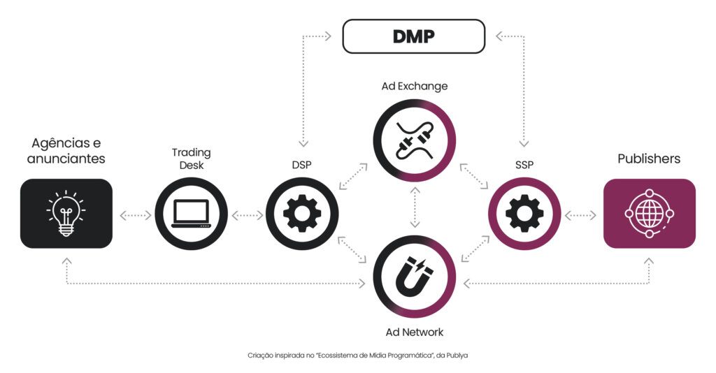 A Data Management Platform (DMP) coleta, armazena e organiza dados de audiência para construir segmentações. A partir dos dados, é possível conectar a audiência ao perfil de público-alvo do anunciante.