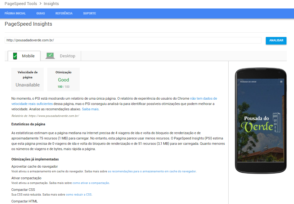 Foi pensando em pontos assim que conseguimos garantir a pontuação 100 com o site da Pousada do Verde: